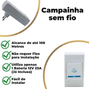 sobre os produtos: para que chegue tudo na mais perfeita ordem aos nossos clientes. Dúvidas ou reclamações: - se tiver algum problema com seu produto nos contate via chat que faremos o maior esforço para deixa-lo satisfeito. Pedimos que não deixe reclamações ou qualificações negativas antes que resolvamos seu problema. Pós-venda: - não tenha dúvidas nós vendemos bem para vendermos sempre conte com nosso atendimento sempre que precisar. Obrigado pela visita e boas compras Marca: Wireless Doorbell