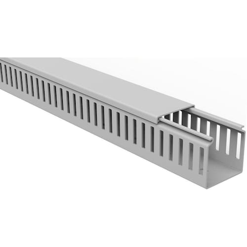 Canaleta Para Painel Tramontina Semiaberta Cinza 50x50x2000 Mm Canaleta para Painel Tramontina Semiaberta Cinza 50x50x2000 mm Inclua a canaleta para painel Tramontina semiaberta cinza 50x50x2000 milímetros em projetos elétricos e garanta toda a praticidade e organização que eles necessitam. Desenvolvida em termoplástico de alta qualidade, ela é ideal para a montagem eficiente de painéis elétricos, proporcionando proteção e organização aos fios e cabos. Com 2 metros de comprimento, a canaleta simplifica a instalação, apresentando furações pré-determinadas que agilizam o processo de fixação durante a montagem do painel. A canaleta garante maior segurança para as instalações elétricas, com toda a qualidade Tramontina, que você já conhece e confia!