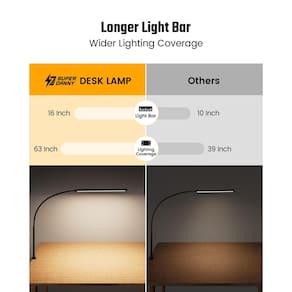 - Lâmpada de mesa LED para cuidados com os olhos: a lâmpada de mesa SUPERDANNY com grampo de pescoço de ganso tem um ângulo de iluminação exclusivo de 60° que evita que a luz direta brilhe em seus olhos. Possui 54 chips de LED de alta qualidade que fornecem luz suave uniforme e sem cintilação, reduzindo o cansaço visual mesmo durante o uso prolongado. Esta lâmpada aumenta o foco e a produtividade, tornando-a ideal para trabalhar em documentos importantes ou artesanato detalhado.