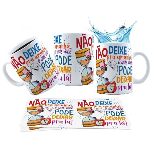 Caneca 325ml Não deixe pra amanhã o que você pode deixar pra lá!Ideal para você ou presentear!Serve para ornamento decorativo, vaso, porta lápis, porta treco, caneca, etcCapacidade: 325mlTamanho: Altura: 9,5cm – Largura (Alça): 12cm – Diâmetro: 8cmMaterial: CerâmicaProduto novo com caixaVALOR UNITÁRIOLavar antes do usoNão usar lava-louçasNão usar a parte verde da esponjaPode ir no micro-ondas, mas evite o excesso e uso prolongadoLavar com esponja maciaQuedas ou choques podem danificar o produtoNão utilizar limpa alumínio e saponáceos Marca: LARANJA E MIMOS