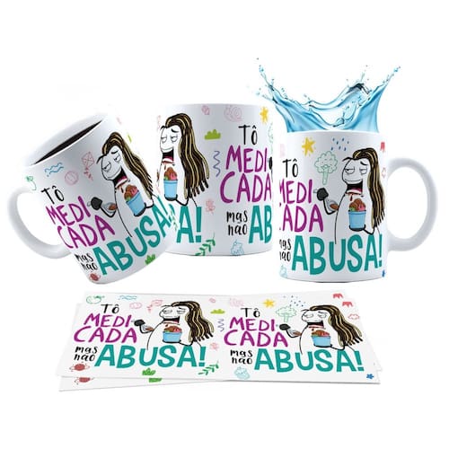 Caneca 325ml Tô medicada mas não abusa! EngraçadaIdeal para você ou presentear!Serve para ornamento decorativo, vaso, porta lápis, porta treco, caneca, etcCapacidade: 325mlTamanho: Altura: 9,5cm – Largura (Alça): 12cm – Diâmetro: 8cmMaterial: CerâmicaProduto novo com caixaVALOR UNITÁRIOLavar antes do usoNão usar lava-louçasNão usar a parte verde da esponjaPode ir no micro-ondas, mas evite o excesso e uso prolongadoLavar com esponja maciaQuedas ou choques podem danificar o produtoNão utilizar limpa alumínio e saponáceos Marca: LARANJA E MIMOS