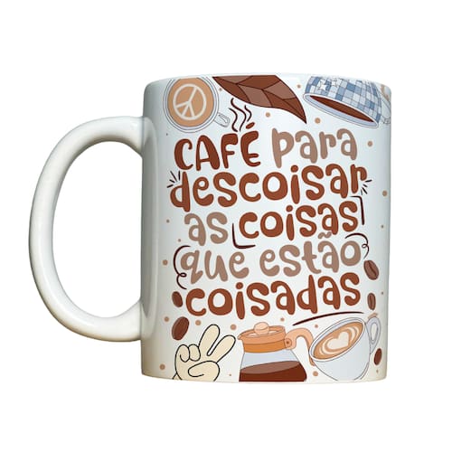 Caneca 325ml Vibes Café para descoisar as coisas que estão coisadasIdeal para você ou presentear!Serve para ornamento decorativo, vaso, porta lápis, porta treco, caneca, etcCapacidade: 325mlTamanho: Altura: 9,5cm – Largura (Alça): 12cm – Diâmetro: 8cmMaterial: CerâmicaProduto novo com caixaVALOR UNITÁRIOLavar antes do usoNão usar lava-louçasNão usar a parte verde da esponjaPode ir no micro-ondas, mas evite o excesso e uso prolongadoLavar com esponja maciaQuedas ou choques podem danificar o produtoNão utilizar limpa alumínio e saponáceos Marca: LARANJA E MIMOS