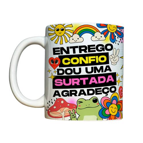 Caneca 325ml Vibes Entrego confio dou uma surtada agradeçoIdeal para você ou presentear!Serve para ornamento decorativo, vaso, porta lápis, porta treco, caneca, etcCapacidade: 325mlTamanho: Altura: 9,5cm – Largura (Alça): 12cm – Diâmetro: 8cmMaterial: CerâmicaProduto novo com caixaVALOR UNITÁRIOLavar antes do usoNão usar lava-louçasNão usar a parte verde da esponjaPode ir no micro-ondas, mas evite o excesso e uso prolongadoLavar com esponja maciaQuedas ou choques podem danificar o produtoNão utilizar limpa alumínio e saponáceos Marca: LARANJA E MIMOS