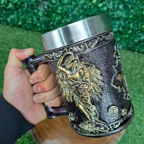 Desfrute de momentos especiais com a Caneca Anjo Time is Money. Feita com resina de alta qualidade e com capacidade de 600ml, esta caneca é uma verdadeira obra de arte. Seu design detalhado em relevo proporciona um acabamento artesanal incrível.