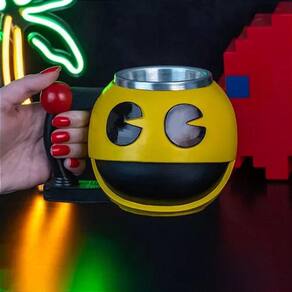 Adicione um toque de nostalgia e diversão à sua coleção de canecas com a Caneca 3D Pac Man Inox com Resina Decorativa. Além de ser funcional, ela também é uma peça de decoração única que certamente chamará a atenção de todos os fãs do Pac-Man.