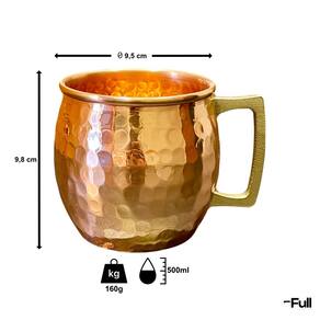 - Caneca fabricada em cobre 100% puro e alça em liga de bronze.