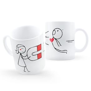 Casalzinho de palito, sendo arrastados pelo imã do amor nessa linda caneca :)