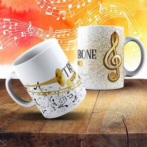 Caneca Branca de Porcelana Personalizada Coleção Instrumentos Musicais