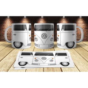 Caneca Branca de Porcelana Personalizada Coleção Kombi