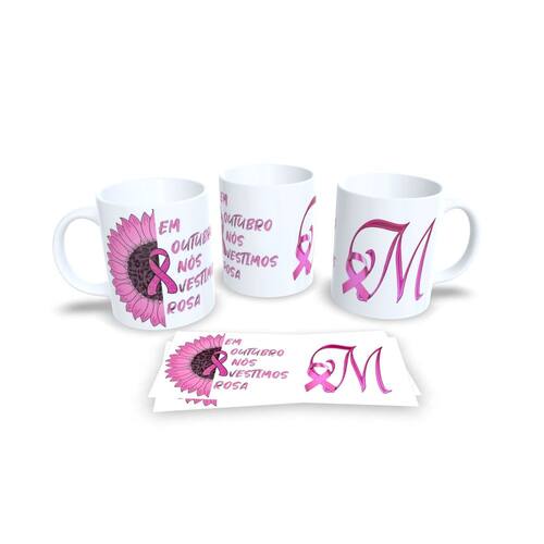 Caneca Branca de Porcelana Personalizada Outubro Rosa