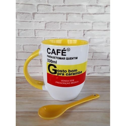 Dúvidas frequentes: 1. Qual o material da caneca? A Caneca Café - Caneca De Colher Amarela é feita de [especificar o material], garantindo durabilidade e resistência.