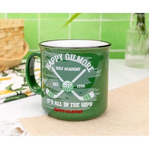 - Caneca Happy Gilmore: Caneca temática apresenta um design exclusivo mostrando a Happy Gilmore Golf Academy. Hilariamente escrito na parte inferior da caneca está "Está tudo nos quadris". O design é apresentado em ambos os lados da caneca. A caneca é verde com uma borda preta.