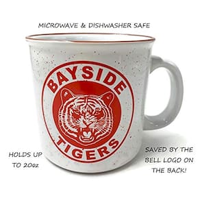 - CANECA DE CAFÉ DE CAMPER: Nossa caneca de café de cerâmica para acampamento comporta 590 ml da sua bebida favorita e a mantém em uma temperatura confortável, esta caneca oficialmente licenciada em estilo campista que apresenta branco com acabamento e design vermelhos, o logotipo dos Bayside Tigers e mascote do programa de TV Saved by the Bell
