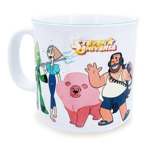 - Você pode contar conosco: Steven Universe reúne toda a equipe nesta caneca de café. Fazendo sua aparência intergaláctica é granada, ametista, peridoto, lápis-lazúli, o mágico leão rosa, universo Greg e pérola.