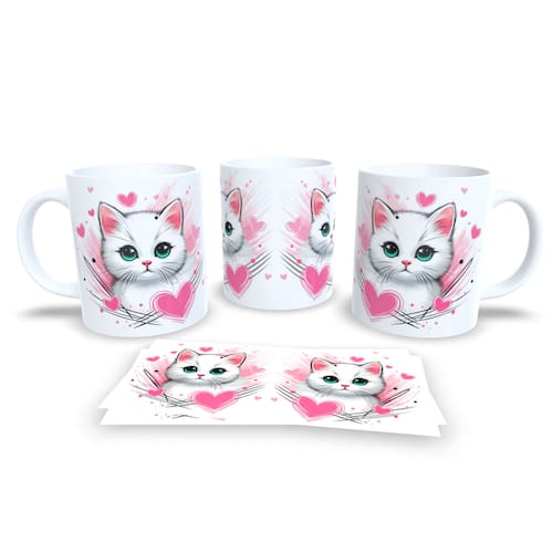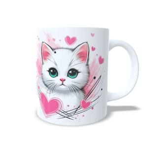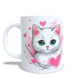 Caneca Cerâmica Personalizada Gato / Gatinho Branco - Modelo 785265