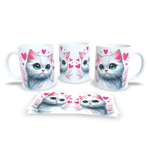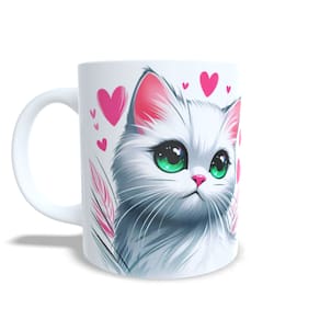 Caneca Cerâmica Personalizada Gato / Gatinho Branco - Modelo 785266