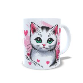 Caneca Cerâmica Personalizada Gato / Gatinho Branco - Modelo 785267