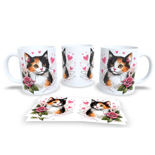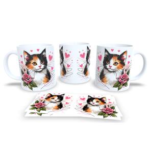 Caneca Cerâmica Personalizada Gato / Gatinho Tricolor - Modelo 785304