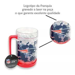 Além disso, a Caneca Chopp NFL New England Patriots Gel Congelante Térmico possui um design moderno e atrativo. Na cor incolor com detalhes em vermelho, azul e branco, essa caneca é estampada com o logotipo dos Patriots, gravado a laser, o que garante excelente qualidade e durabilidade.