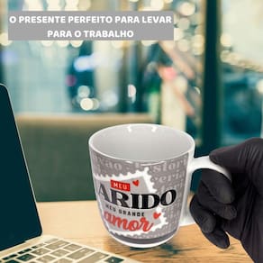 Caneca Cinza Porcelana Premium 360ml Café Meu Marido Grande Amor Esposo Presente Nada mais legal que homenagear seu Marido com uma Caneca Porcelana super especial que possui um design clássico e sofisticado.