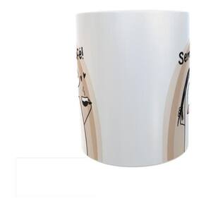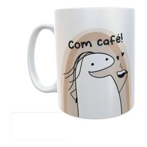 Caneca de cerâmica branca, comporta até 325ml e pode ser levada ao microondas e a lava-louças que não trinca e nem desbota.