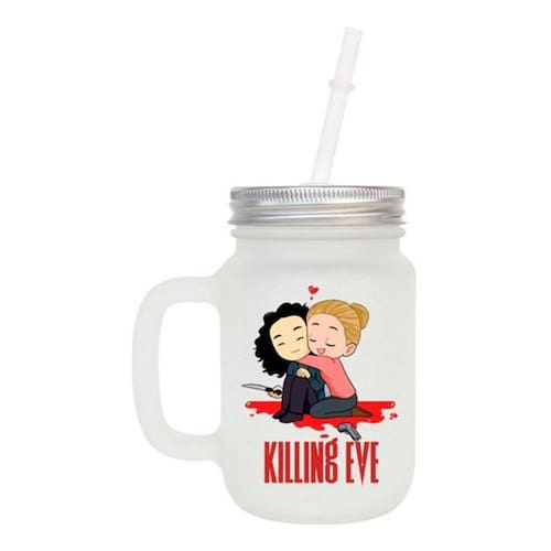 Caneca Com Canudo Mason Jar Da Série Killing Eve Mason Jar: Não pode ser levada ao microondas; Não use produtos abrasivos. Lave com a parte macia da esponja. Material: vidro jateado. Capacidade: 450ml Acompanha canudo. Marca: Criattivis
