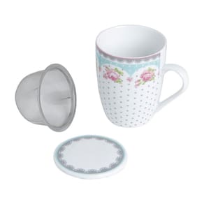 Linda caneca decorada produzida em porcelana, acompanha caixa de presente e filtro para chá. Tome suas bebidas com charme e estilo Ótima opção para presentear quem você ama.