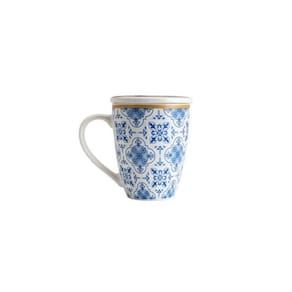 Caneca Com Tampa e Filtro de Porcelana Lisboa Azul 310ml Beneficios do Produto:Prepare o seu chá, com mais praticidade.Uma caneca cheia de charme, com detalhes minuciosos.Possui um filtro/infusor que se encaixa bem, para evitar vazamentos e respingos, que serve como peneira para as ervas.Com tampa, para poder deixar imerso por alguns minutos, sem perder o aroma e o sabor natural do chá. Características:Conteúdo da Embalagem: 1 Caneca Com Tampa e Filtro de Porcelana Lisboa Azul 310mlCapacidade: 310mlMedidas Aprox: 8,5X8,5X10cmMaterial: PorcelanaCor: Branco e Azul Observação:Foto: Imagem Meramente IlustrativaGarantia (Fabricante): Contra defeitos de fabricação.Fotos ambientadas para demonstração do produto, os demais itens não estão inclusos.
