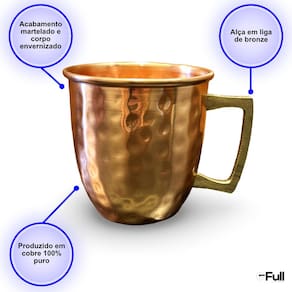 - Caneca fabricada em cobre 100% puro e alça em liga de bronze.
