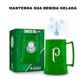 Caneca Copo Verde Gel 300ml Térmica Chopp Cerveja Time Clube Escudo Palmeiras Oficial Selo Detalhes A caneca Gel é a escolha ideal para os verdadeiros torcedores demonstrarem todo o seu amor pelo time do coração. Esta caneca gel é a maneira perfeita de manter suas bebidas sempre geladas de uma forma super descontraída. Feita de acrílico de alta qualidade, a caneca contém um gel especial que congela quando colocada sob baixas temperaturas.