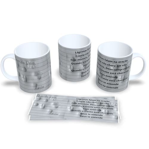 Ideal para café, chá ou qualquer bebida quente, esta caneca traz consigo uma mensagem marcante, que transmite espiritualidade e emoção, tornando-se um presente especial para amigos, familiares ou para uso pessoal.