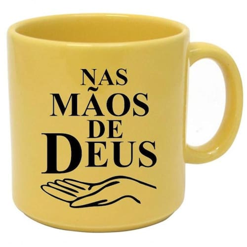 Caneca Cristã - Nas Mãos de Deus - Feito em Plástico Resistente - Ideal para seu Dia a Dia, Lembranças ou Revenda - Em Polipropileno - 400 ml - Cor Amarela