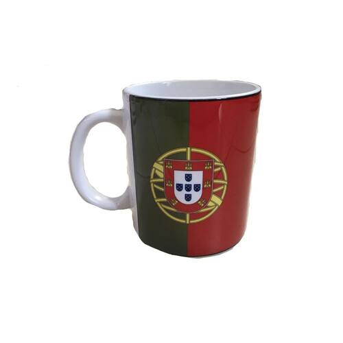 Caneca de Porcelana da bandeira de Portugal de 330 ML. Excelente acabamento e qualidade. Estampada dos 2 lados. Dimensões: Diâmetro: 8 cm Altura da Caneca: 9 CM Pode usar no microondas. Não utilizar em máquina de lavar As canecas são todas enviadas em plástico bolha e em caixas reforçadas. Marca: Mundo Das Bandeiras