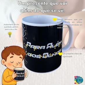 Descubra a Caneca Acessibilidade 325 ml em Braile alto relevo - Para além dos olhos, um produto que resgata a sensibilidade e promove inclusão no seu dia a dia. Com design exclusivo que une funcionalidade e estética, esta caneca traz a escrita em Braile em alto relevo, permitindo que pessoas com deficiência visual sintam a mensagem Para Além dos Olhos.