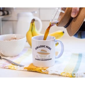 - É um ótimo presente: segure sua bunda e tome um gole desta caneca de café oficialmente licenciada pelo Jurassic Park. Esta taça exclusiva é um item essencial de cozinha que fará parte da sua coleção.