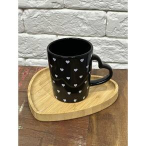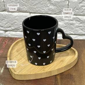 Características do produto Material: cerâmica Capacidade: 270ml Cor: preta com estampa de corações brancos Dimensões axlxp : 10 x 11 x 8 cm