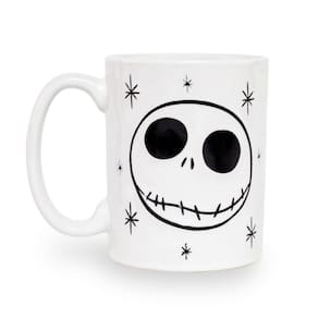- TÃO SIMPLES, TÃO ASSUSTADOR: puro como a neve, aterrorizante como a escuridão debaixo da cama, o crânio icônico de Jack Skellington adorna esta caneca. O design lembra os esboços autênticos do personagem feitos por Tim Burton, ao lado de algumas estrelas simples.