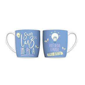 Com capacidade para 300ml, é feita na cor rosa e azul, ela conta com uma linda frase, "Sua luz inspira." de um lado e do outro, "Você deixa o mundo mais bonito!", e uma estampa super delicada, que agrega ainda mais beleza a peça.