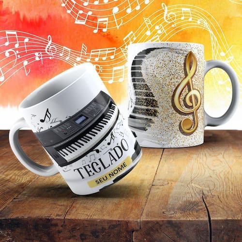 - 1 Caneca de Porcelana 325ml Personalizada com Estampa de Instrumentos Musicais