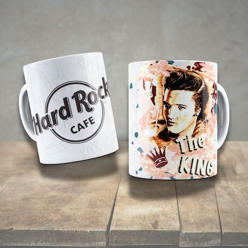 Caneca De Porcelana 325ml Decorada ícones Da Música Elvis Presley 2