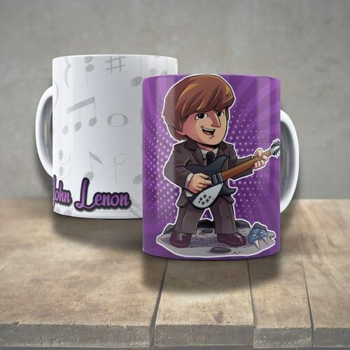 Caneca de Porcelana 325ml Decorada Ícones da Música Personalizada John Lenon -