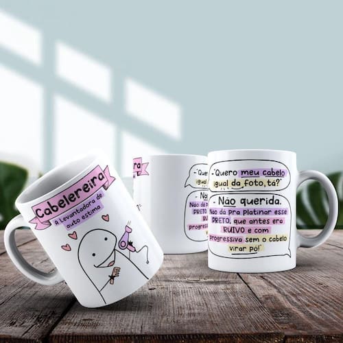 Caneca De Porcelana 325ml Personalizada Flork Profissões Feminino Cabelereira