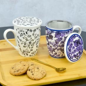A Caneca de Porcelana com Infusor e Tampa Blue Garden é perfeita para presentear ou para se presentear. Adquira a sua hoje mesmo e desfrute dos seus chás favoritos com muito estilo!