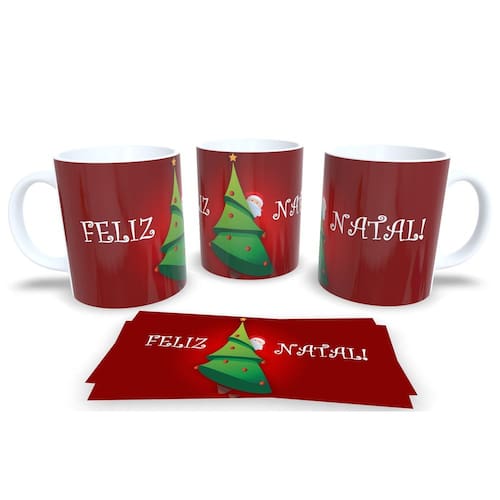 Caneca personalizada de porcelana de alto brilho, com alça e interior branca Coleção Natal.