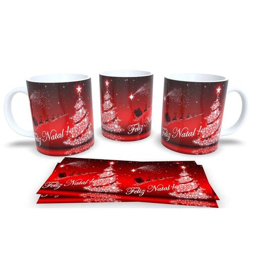 Caneca personalizada de porcelana de alto brilho, com alça e interior branca Coleção Natal.