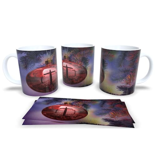 Caneca de Porcelana Branca Personalizada Arvore de Natal