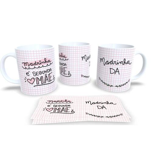 Caneca personalizada de porcelana de alto brilho, com interior e Alça Branca Coleção dindo e dinda.