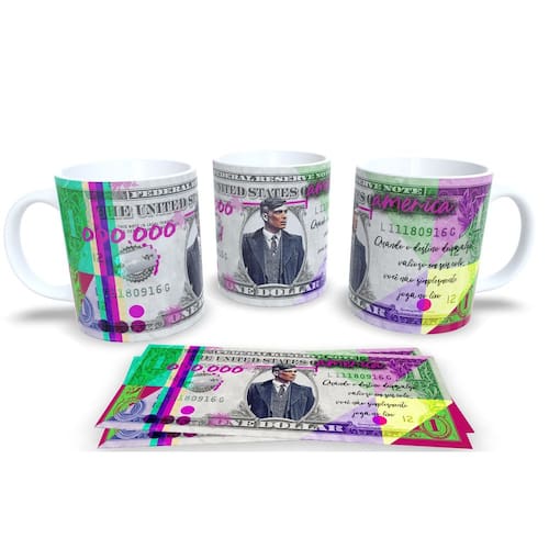 Caneca de Porcelana Branca Personalizada Coleção Dollar