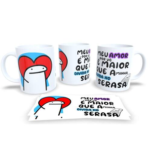 Caneca personalizada de porcelana de alto brilho, com interior e Alça Branca Coleção Flork Namorados.