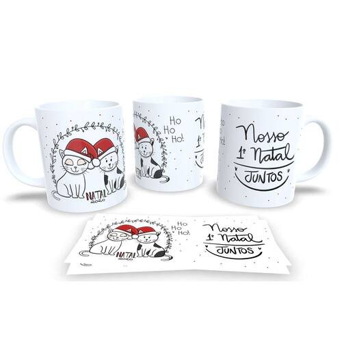 Caneca personalizada de porcelana de alto brilho, com alça e interior branca Coleção NATAL.